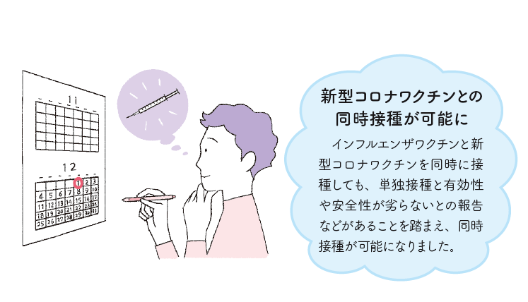 例年の流行のピーク(1 ~ 2月)に合わせて、12月中旬までには接種を終えておくと安心です。