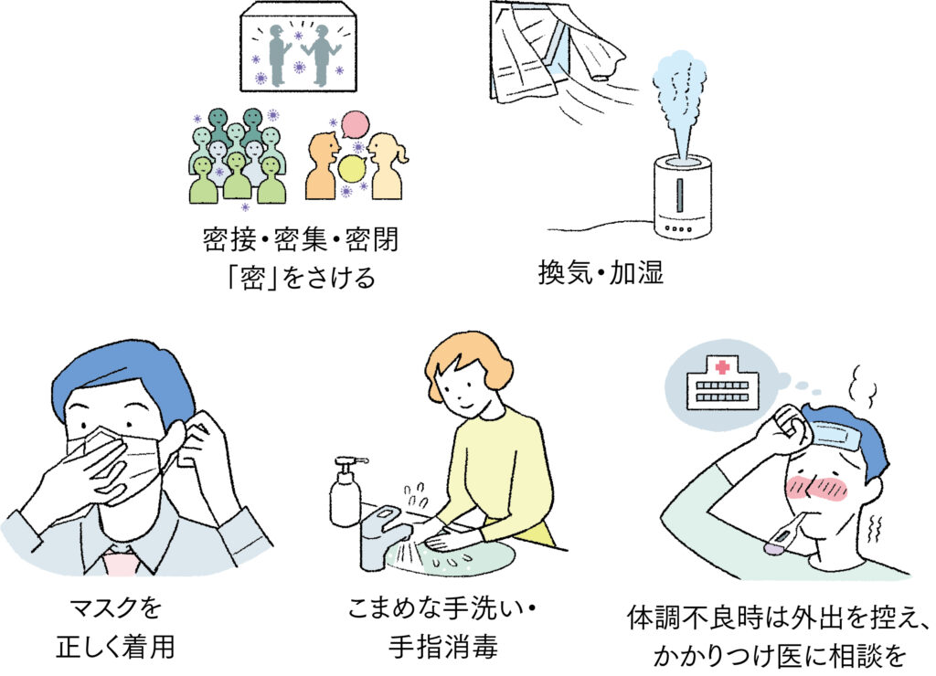 気温が低く空気が乾燥する冬はウイルスの活動が活発になります。新型コロナ感染対策はインフルエンザにも有効なので継続しましょう。