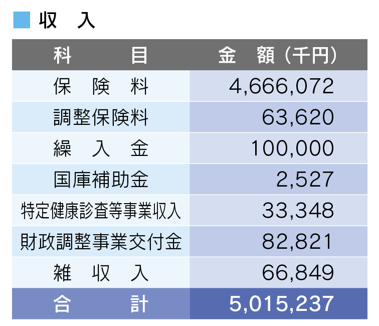 令和3年度の決算状況は、一般保険においては総収入が5,015,237千円、総支出が4,670,231千円となり、収支は差引345,006千円となりました。