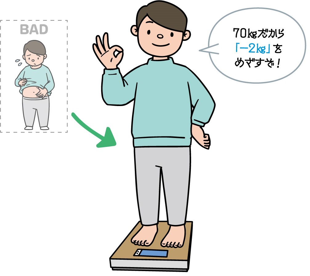 肥満の人は現在の体重から3%以上減らすと、血糖値の改善が期待できます。-おすすめ改善法-