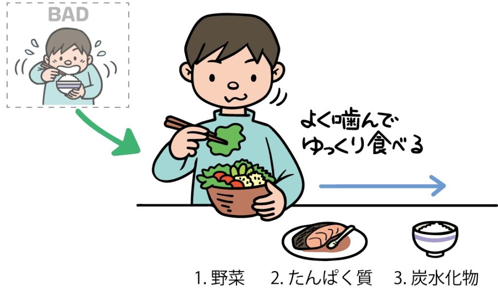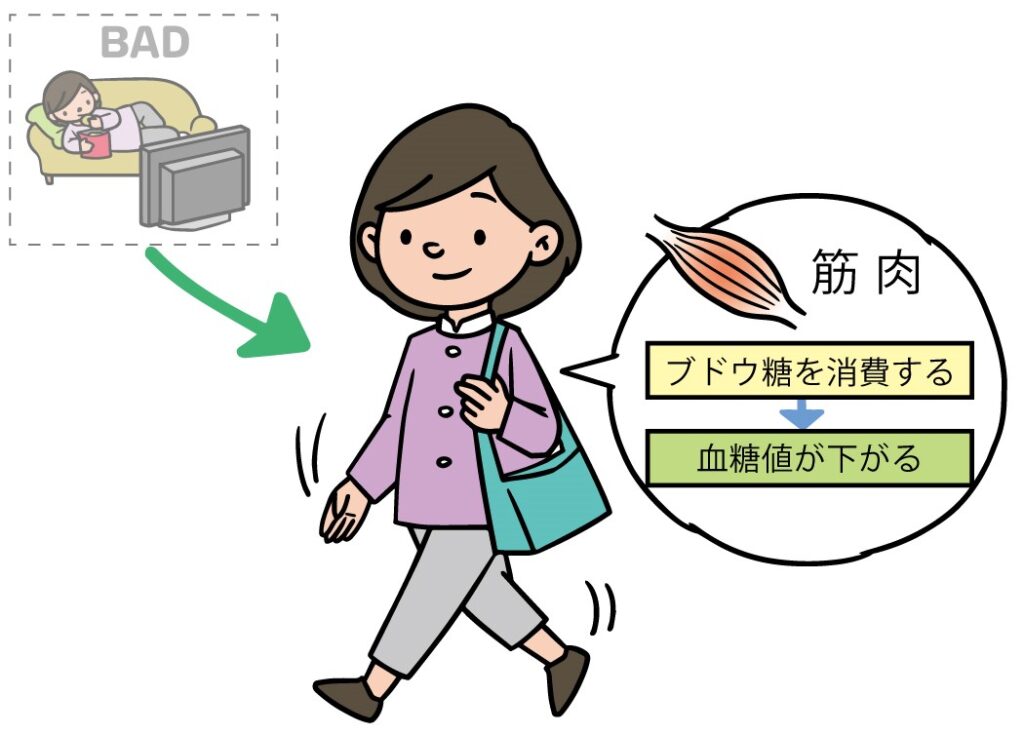 食後に軽く体を動かすと、血糖値の急激な上昇を抑える効果が期待できます。-おすすめ改善法-