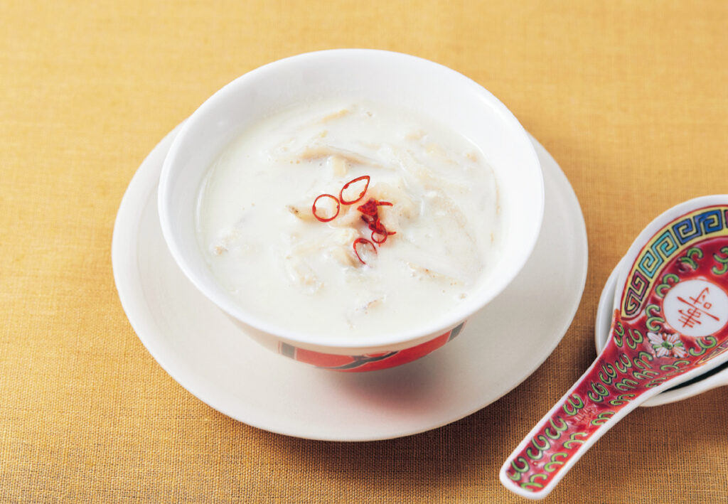 ごぼうは食べやすく薄切りにして加え、豆乳のまろやかな旨味と甘みがしみわたるおいしさです。