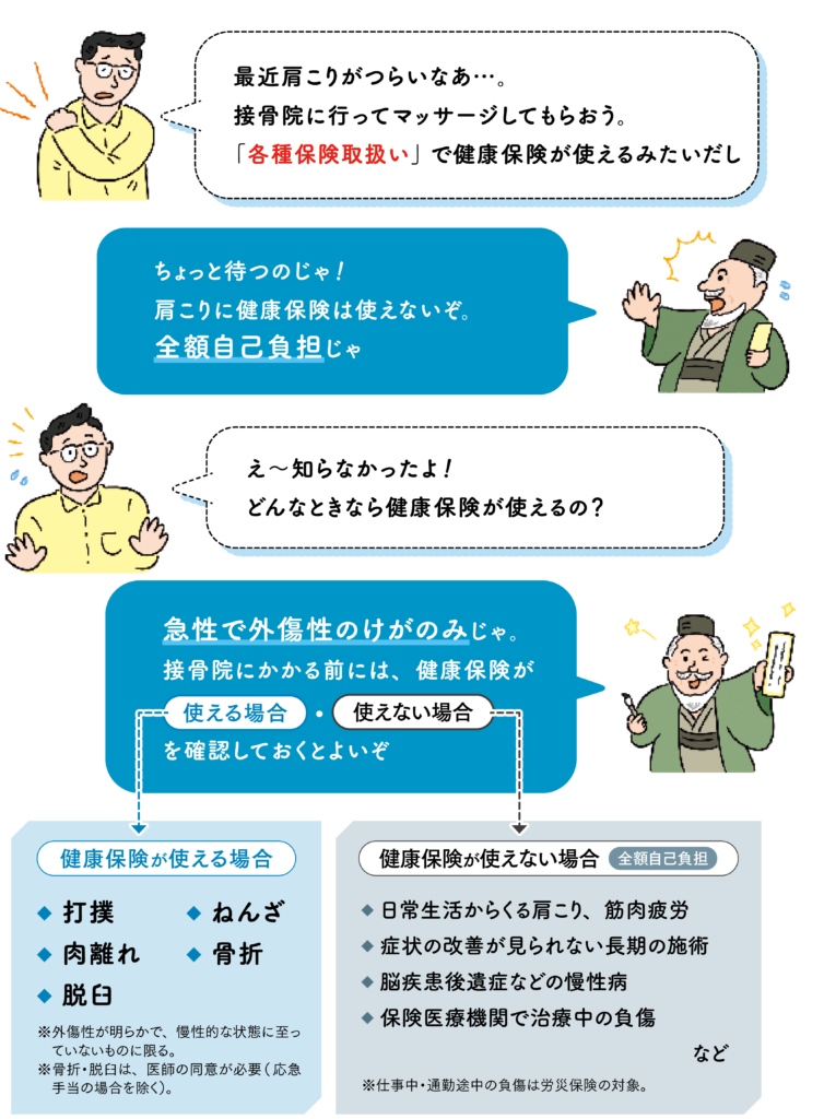 接骨院で健康保険を使用できるのは、一部の施術に限られます。