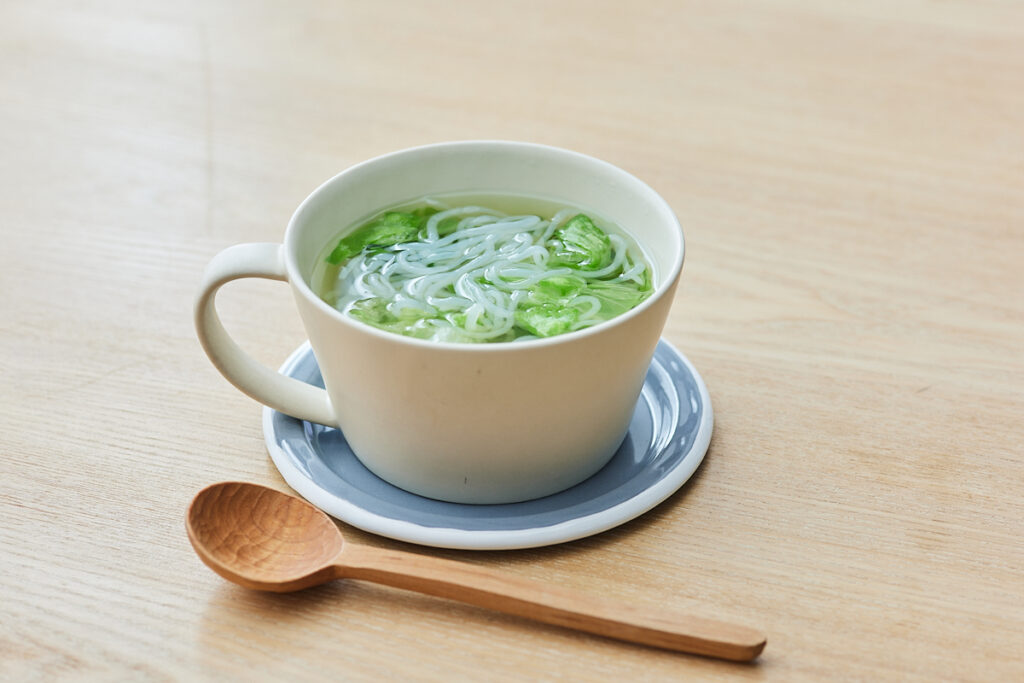 - しらたきは1分ほど下茹でしてザルにあげ、食べやすく 切る。レタスは1cm 幅の細切りにする。