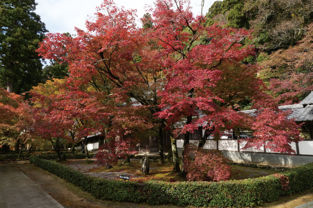 寂室元光禅師が手ずから植えたもので、秋には重く深みのある赤色に。
