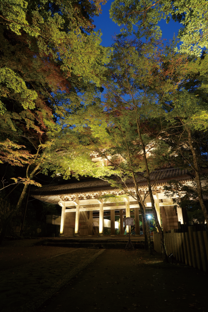 例年11月上旬〜下旬の期間限定で17:00頃〜20:30まで境内がライトアップされ、幻想的な雰囲気に。