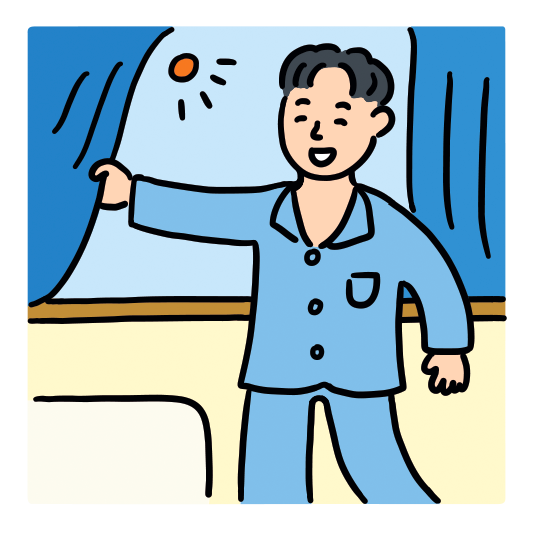 太陽光(とくに朝日)の刺激をとり入れるのがおすすめです。朝起きたらカーテンを開けて朝日を浴びる習慣をつけましょう。