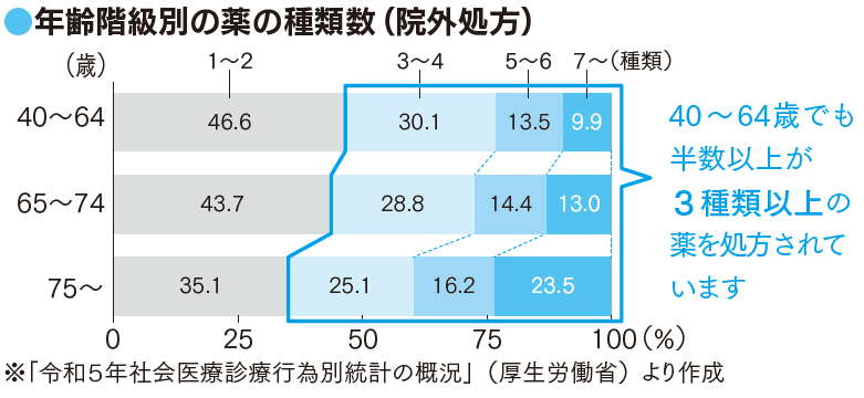 多くの薬が処方されることで薬剤費が増えて医療費の増大につながり、患者負担も増加することになります。