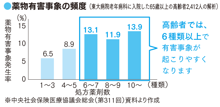 ①多くの薬を服用することで、副作用や薬物有害事象※が発生