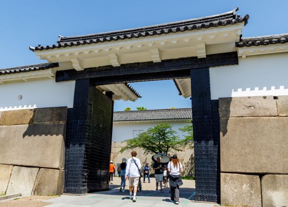 大阪城の正門で、国の重要文化財。1628(寛永5)年、徳川幕府の大坂城再築の際に創建。落雷等、数々の危機を免れて現存する。