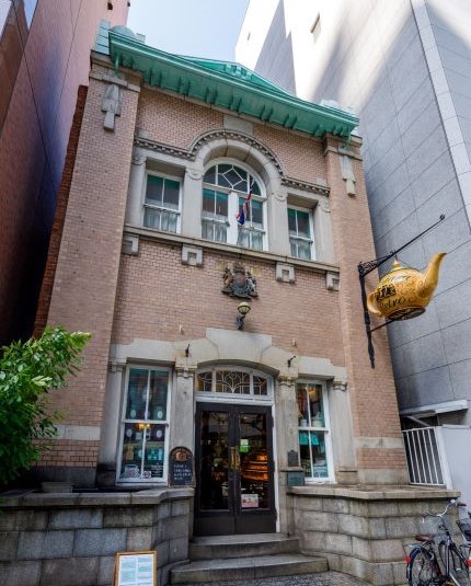 明治期の純英国建築で、国の登録有形文化財。現在は、英国伝統菓子舗(1階)&英国紅茶室(2階)の「北浜レトロ」で人気。