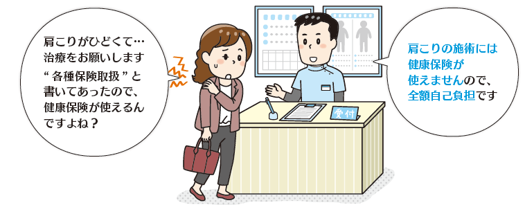 整骨院や接骨院の看板等に“各種保険取扱”や“医療保険療養費支給申請取扱”と書かれているのを見て、どんな施術でも健康保険が使えると思い違いをされていませんか? これは、“限られたケースのみ健康保険が適用になる”という意味で、どんな施術でも健康保険が使えるというわけではありません。知らずに施術を受けてしまわないためにも、整骨院・接骨院にかかるときのルールを知っておきましょう。