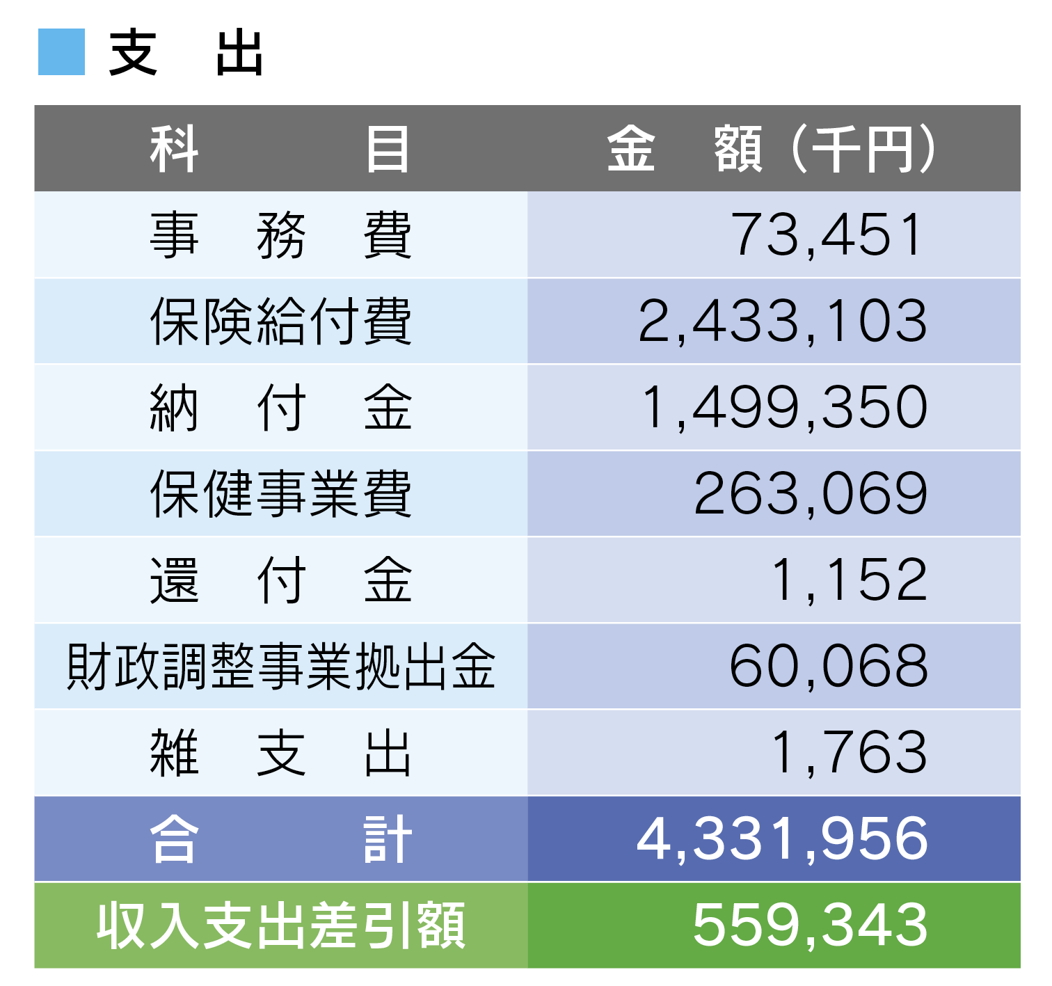 前年度比では、一般の保険料収入は増えましたが、支出側の保険給付費と納付金も増加しました。