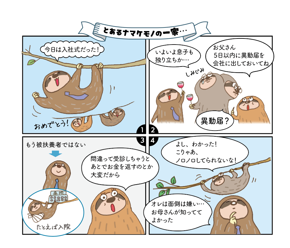 異動届を出さずに病院などで健康保険を使ってしまった場合、被扶養者でなくなった日(資格喪失した日)にさかのぼって医療費を返還していただきます。